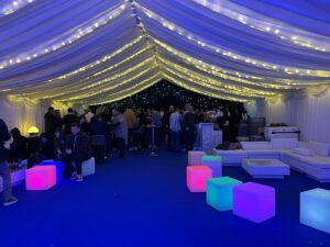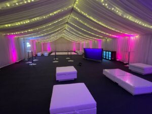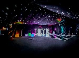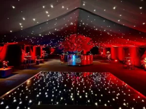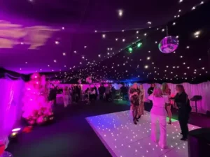 Adding Starlight Lining to the whole of your marquee turns your venue into an awesome nightclub style set up.