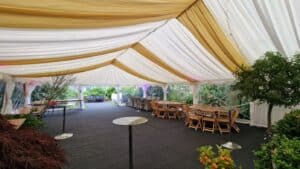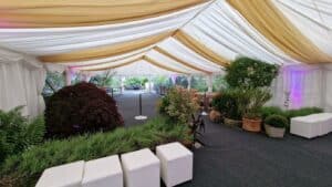 Marquee lining instantly transforms your marquee into a beautiful looking venue. The drapes hide all the metalwork structure and canvass of your marquee. Recommended for all events.